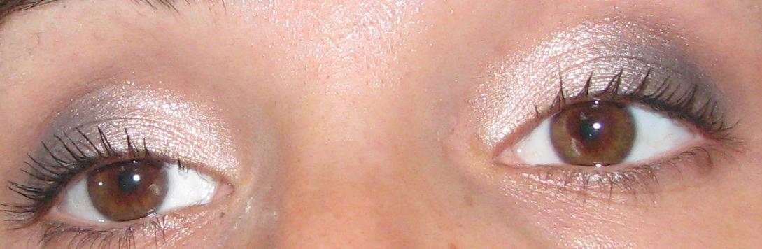 Ma bando alle ciance, ecco a voi il look dello scorso fine settimana, spero i colori si vedano dalle foto... nella parte interna della palpebra c'è un vecchio ombretto Collistar color champagne con micro glitter, esternamente invece c'è Gazette Grey di MAC della collezione Pret a Papier dell'estate dell'anno scorso, una collezione che mi piacque molto ricordo! E' un bel grigio opaco con dei microglitter dorati. E' molto carino e... lo definirei fumoso!